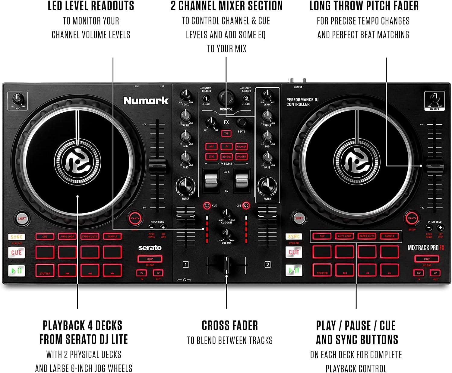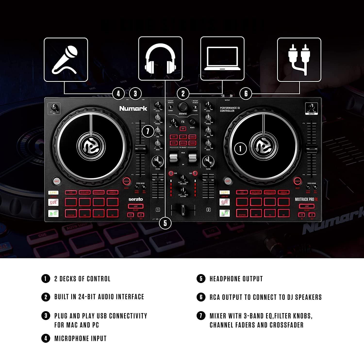 Complete DJ Equipment Package – Numark Mixtrack Pro FX 2 Deck DJ Controller For Serato DJ and M-Audio BX3 3.5 Inch DJ Speakers(2 Decks)