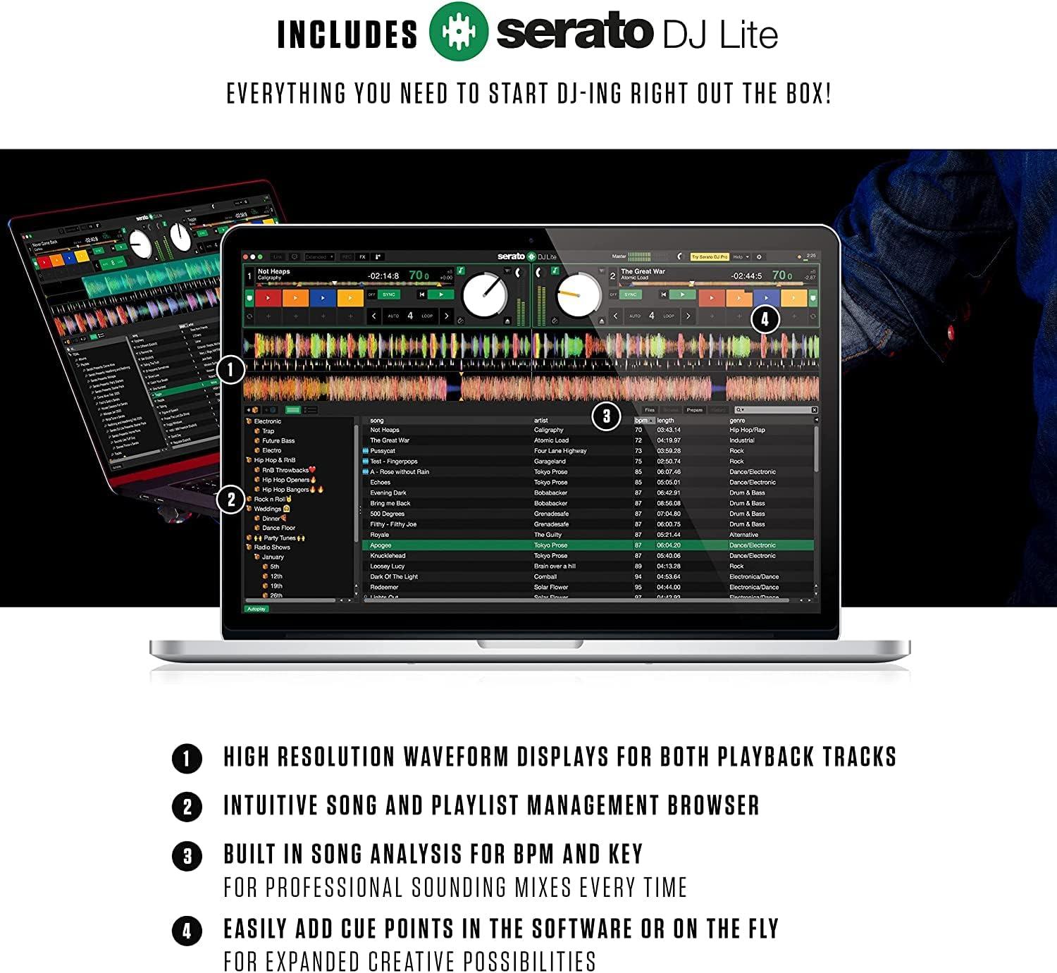 Complete Serato DJ System – DJ Controller for Serato DJ Lite (Included) with 2 decks of control, built-in 24-bit audio interface and plug and play USB connectivity for Mac and PC
