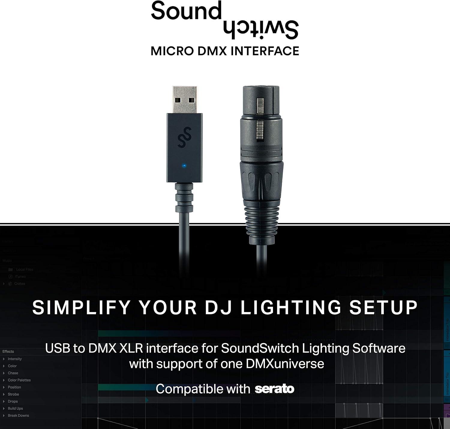 SoundSwitch Micro DMX Interface | Simplify Your DJ Lighting Setup – Dedicated USB to DMX XLR interface for SoundSwitch Lighting Software with support of one DMX universe; compatible with Serato DJ