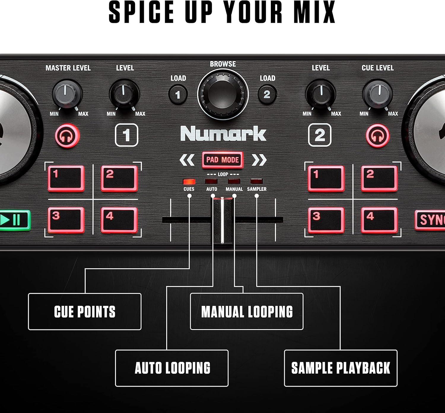 DJ Controller & DMX Interface Starter Pack – DJ controller bundle featuring Numark’s DJ2GO2 Touch 2 deck DJ controller and SoundSwitch Micro DMX Interface, with 3 months SoundSwitch software access