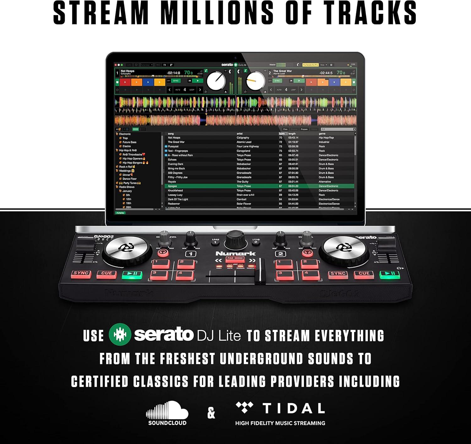 DJ2GO2 Touch | Ultra-Portable, Feature Packed – 2 channel Serato DJ Lite (Included) USB DJ Controller for Mac and PC; MIDI mapping for use with other popular DJ Software (including Virtual DJ)