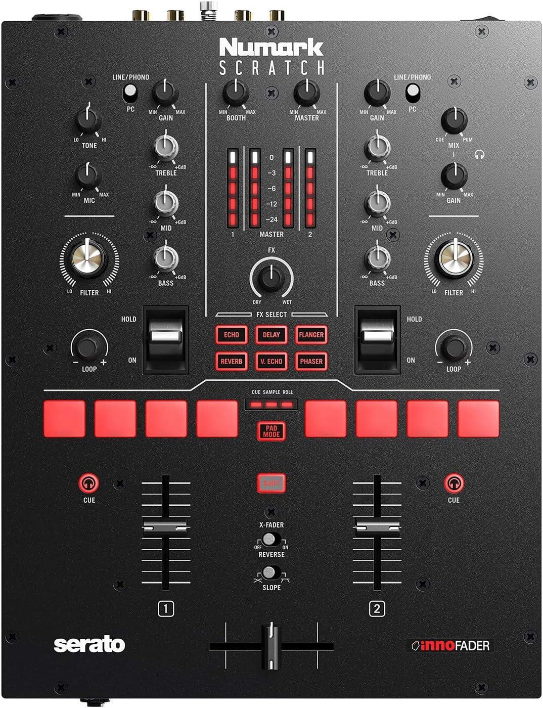 Numark Scratch | Two-Channel DJ Scratch Mixer for Serato DJ Pro (included) With Innofader Crossfader, DVS license, 6 Direct Access Effect Selectors, Performance Pads and 24-Bit Sound Quality